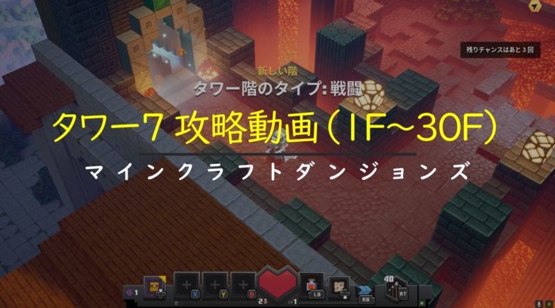 マインクラフトダンジョンズタワー7を攻略してみました。初見プレイは毎回難しそうに感じるのですが、重ねてプレイすると慣れてきたのか難易度が普通に感じますので今回も難易度は普通かなと思ったら簡単でした。10段階だと4かな?タワー1からだと同じマップが出てきますが、各階の形状や罠、モブ出現タイプや配置が判ればライフを大事に進めていくことができます。ショートカットはまだ行ってませんが、この記事の後にプレイしてバグが出るか確認します。
