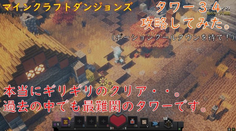 マインクラフトダンジョンズタワー34を攻略してみましたが、過去のタワーの中で一番難しかったです。今までになくボスが居ないマップにも中ボスが配置されており難易度が非常に上がりました。