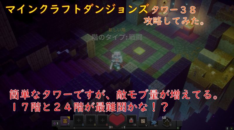 続きを読むマインクラフトダンジョンズタワー34を攻略してみましたが、過去のタワーの中で一番難しかったです。今までになくボスが居ないマップにも中ボスが配置されており難易度が非常に上がりました。 1階から厳しかったですね。 各フロアの