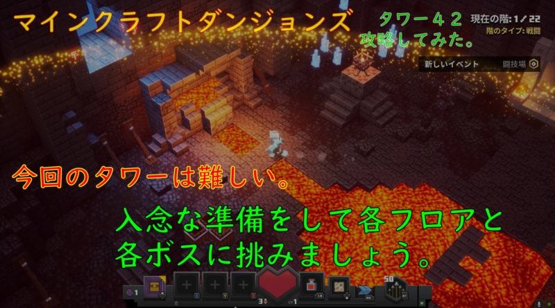 続きを読むマイクラダンジョン タワー42ですが非常に高難易度でライフを減らさずにクリアするのに苦労して5回クリアしました。 周回にはまったく向いてないタワーですね。 タワー42の何が難しいのかですが、ボスが「壊れた大釜」「ジャング
