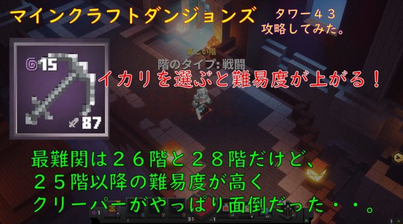 マイクラダンジョンズタワー43が始まりました。今回はクリーパーとレイスが盛りだくさんでしたね。そのせいかモブの量が増えた感じです。 今回は30階までありますが、今までにあまり無いパターンでしり上がりに難易度が上昇します。