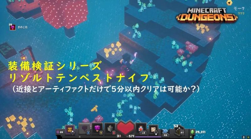 続きを読むこんばんは、HATOです。 今回は、マインクラフトダンジョンズ遠距離武器「バブルバースター」を検証します。 弓メインでムーシュルーム島を5分以内にクリアできるのか?まったく自信の無い私ですがチャレンジしなければ判らない事